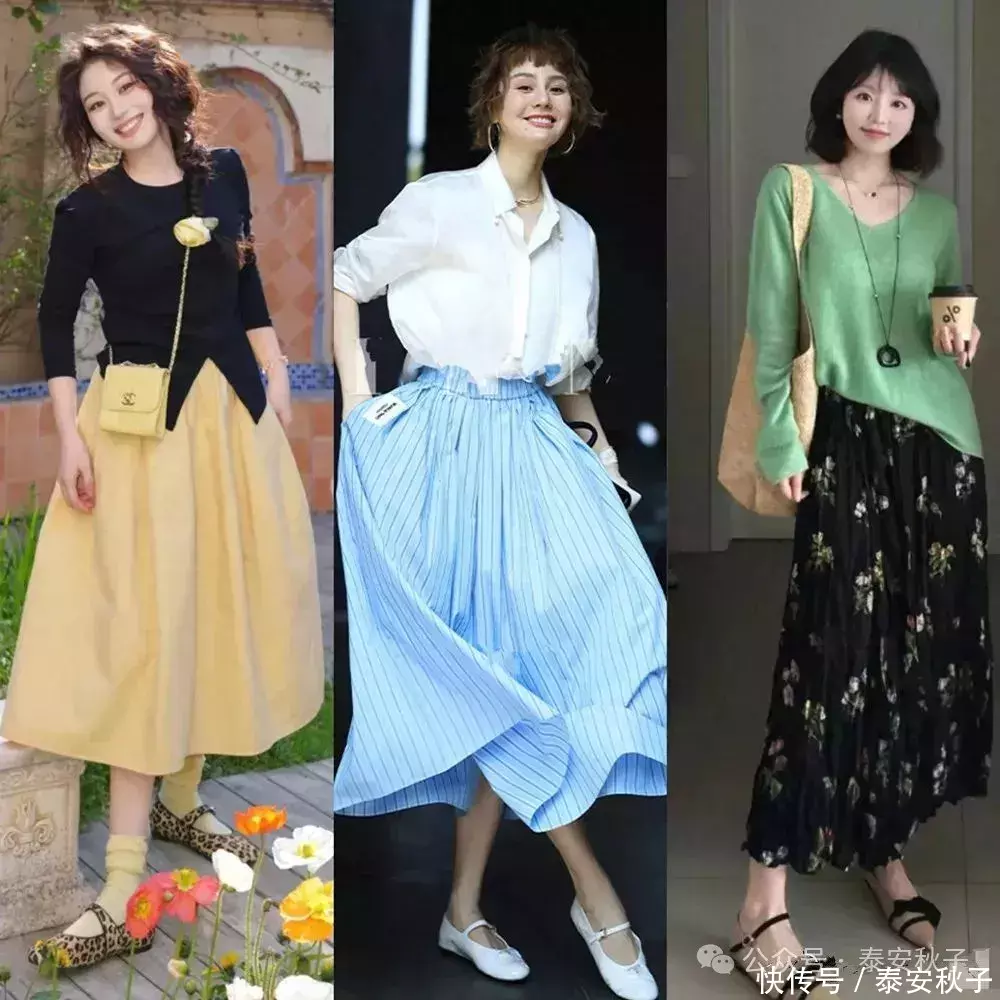 如果你喜欢复古风格多一些,那就用舒适又时尚的芭蕾鞋去配半身裙吧。