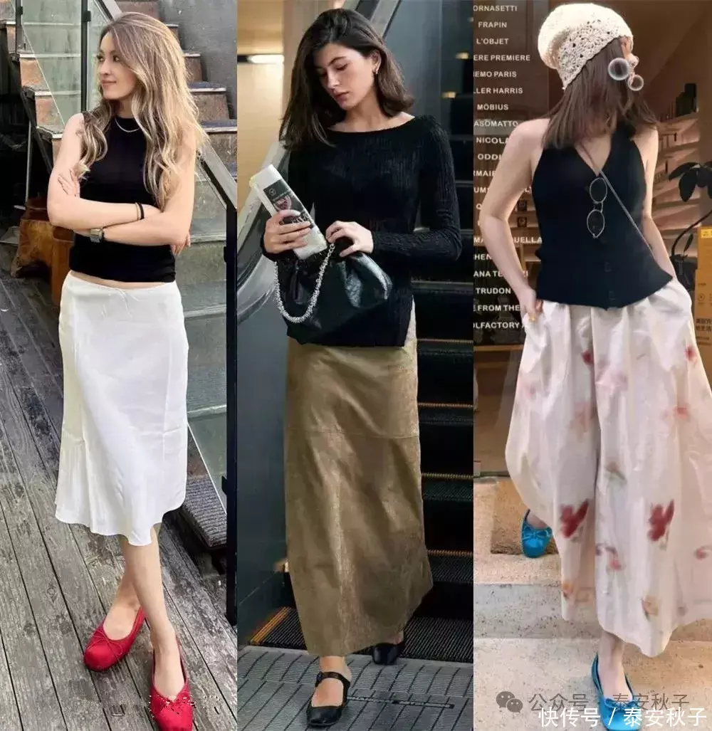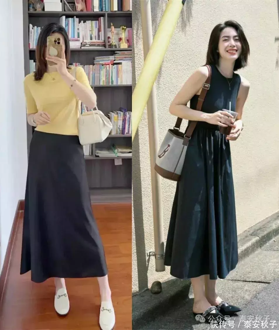 立秋之后,我们可以用裙子+穆勒鞋的组合,打造出一种不讨好,不刻意的高级感!